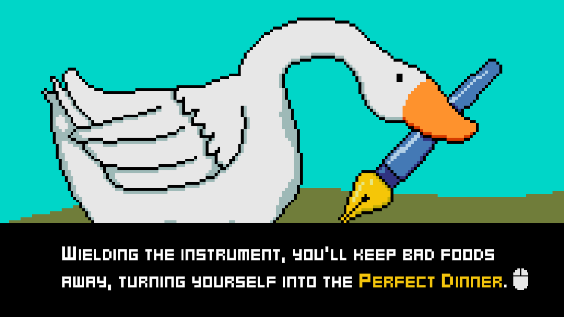 This is a game where you, a goose, absorb as much healthy food as possible while avoiding all the bad stuff.